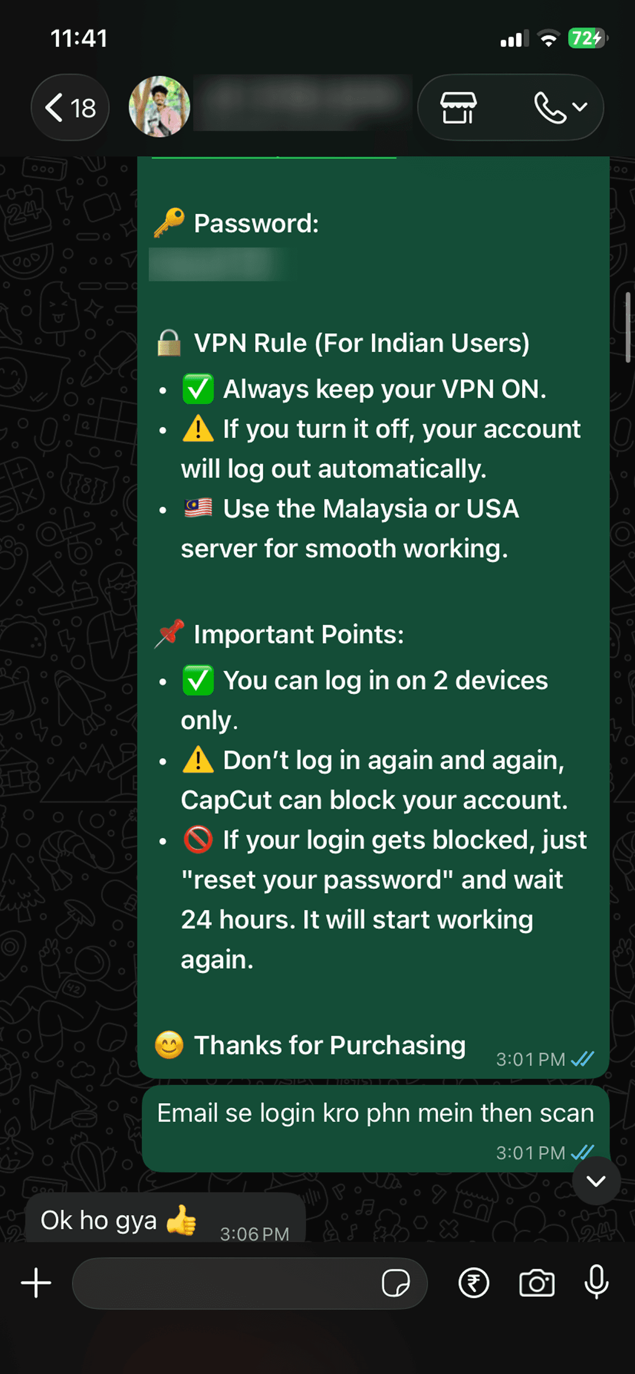 Any issue → Instant replacement on WhatsApp